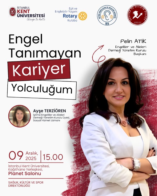 Metin: İstanbul Kent Üniversitesi Sağlık, Kültür ve Spor Direktörlüğü Kariyer ve Gelişim Kulübü tarafından düzenlenen "Engel Tanımayan Kariyer Yolcuğum" 9 Aralık saat: 15:00’da Kağıthane Kampüsü Planet Konferans Salonun da gerçekleşecektir.