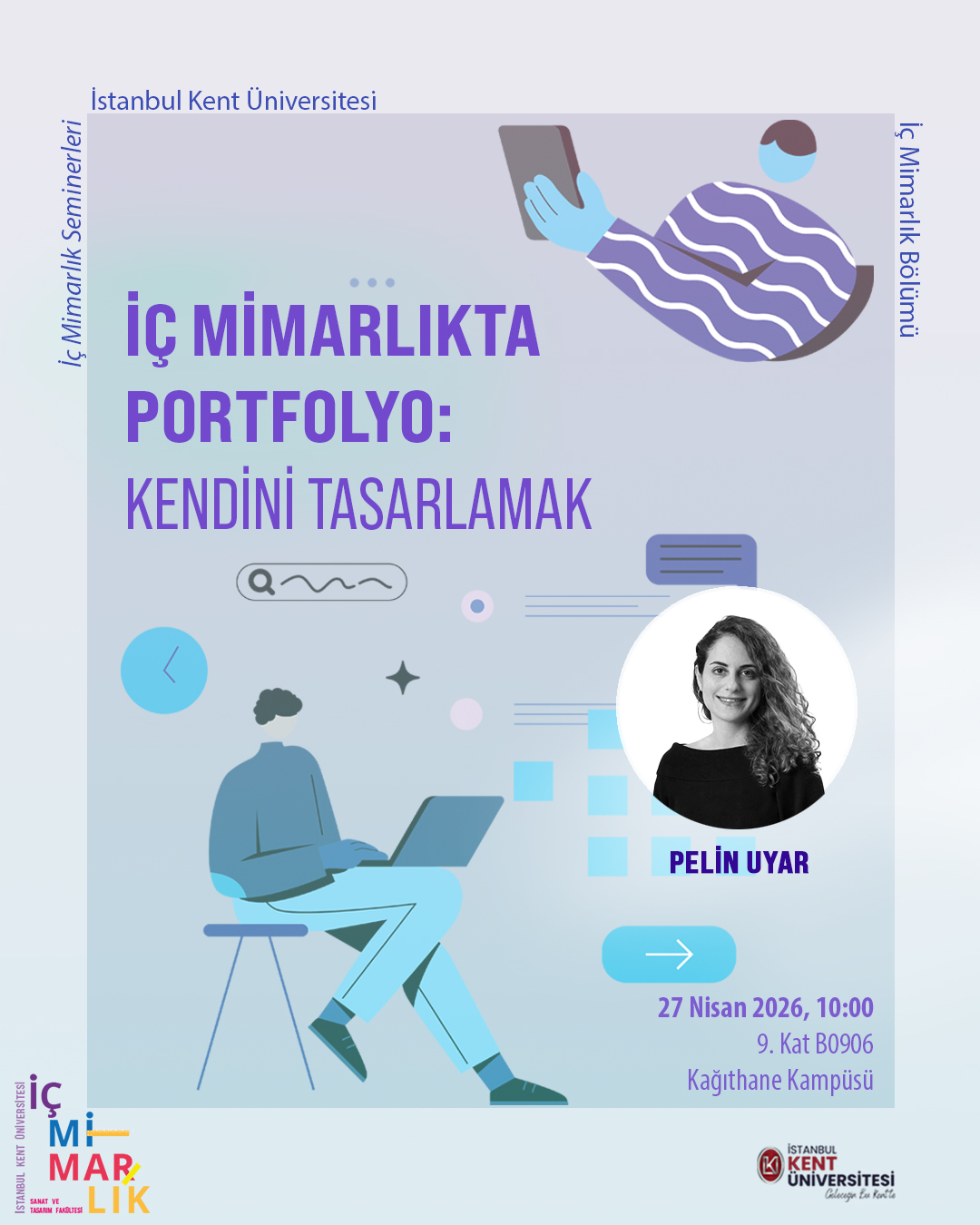 İstanbul Kent Üniversitesi Sanat ve Tasarım Fakültesi İç Mimarlık Bölümü tarafından düzenlenen "İç Mimarlıkta Portfolyo: Kendini Tasarlamak" konulu etkinlik 27 Nisan saat: 10:00'da Kağıthane Kampüsü 9. Kat B0906 nolu derslikte gerçekleştirilecektir.