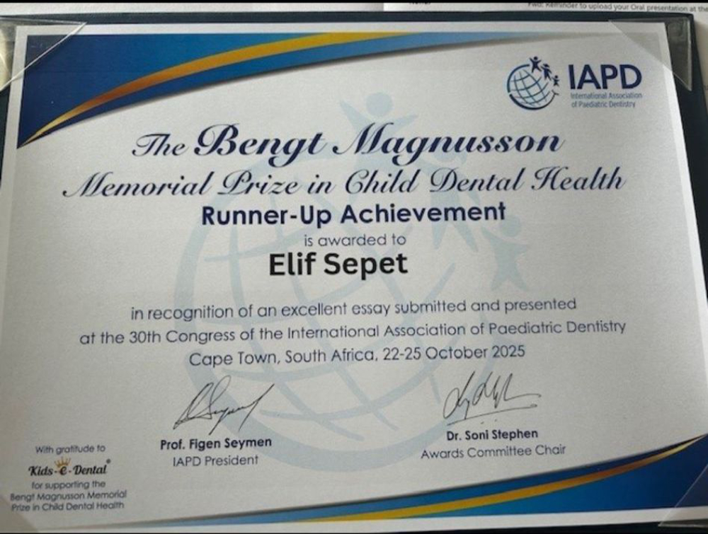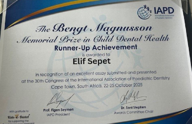 Uluslararası Çocuk Diş Hekimliği Derneği (IAPD) – 30. Kongresi, 22-25 Ekim 2025 tarihleri arasında Güney Afrika’nın Cape Town kentinde gerçekleştirilecek. Kongrede, İstanbul Kent Üniversitesi’nden değerli akademisyenlerimizin ortak çalışması uluslararası düzeyde bilim dünyasıyla paylaşılacak.