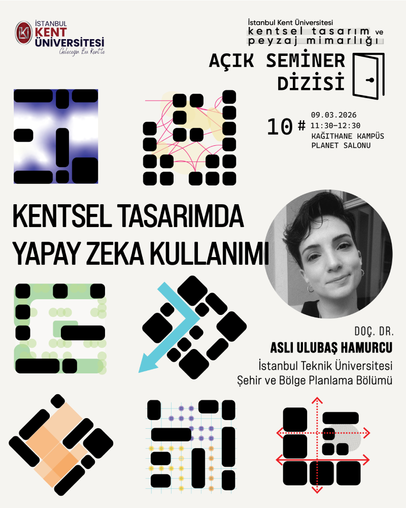 İstanbul Kent Üniversitesi, Sanat ve Tasarım Fakültesi, Kentsel Tasarım ve Peyzaj Mimarlığı Açık Seminer Dizisinin onuncusu, 9 Mart Pazartesi günü saat 11:30-12:30 arasında Kağıthane Kampüsü Planet Salonu'nda gerçekleşecektir.