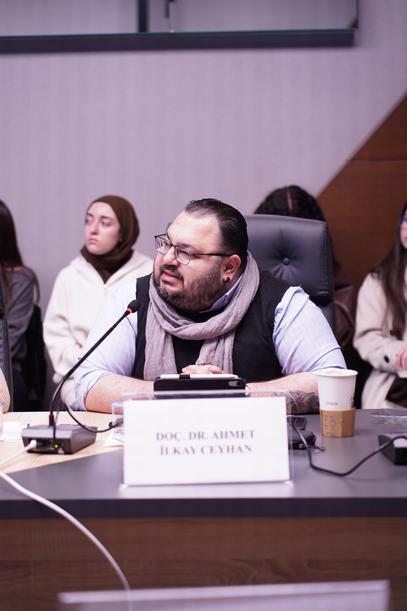 Amerika Birleşik Devletleri ve İsrail’in İran’a Yönelik Müşterek Operasyonu Döneminde Kamuoyu Tepkileri ve Medya Söylemleri konusunda Halkla İlişkiler Bölüm Başkanı Doç. Dr. Ahmet İlkay CEYHAN ve Dr. Öğr. Üyesi Çağrı KARA sunumlarında, modern savaşların artık yalnızca sahada değil, dijital alanda da yürütüldüğünü vurgulamıştır. Manşetler, sosyal medya ve algoritmalar üzerinden nasıl bir algı savaşının üretildiğini detaylandırdılar. Yanıltıcı haber başlıkları, CGI videolar, #WorldWar3 gibi manipülatif hashtag kampanyaları ve bot ağlarının kriz anlarında viral etki yaratarak küresel panik üretebildiğini örneklerle göstermişlerdir. Algoritmaların kullanıcı ilgi alanlarını pekiştirerek yankı odaları oluşturduğunu, böylece aynı olayın farklı ideolojik kutuplarda tamamen zıt gerçekliklere dönüştüğünün altını çizdiler. Sunum, yanlış bilginin teknoloji sayesinde fiziksel çatışmalardan daha hızlı yayılabildiğini ve dijital savaş alanının artık en az fiziksel cephe kadar stratejik öneme sahip olduğunu ortaya koymuştur.