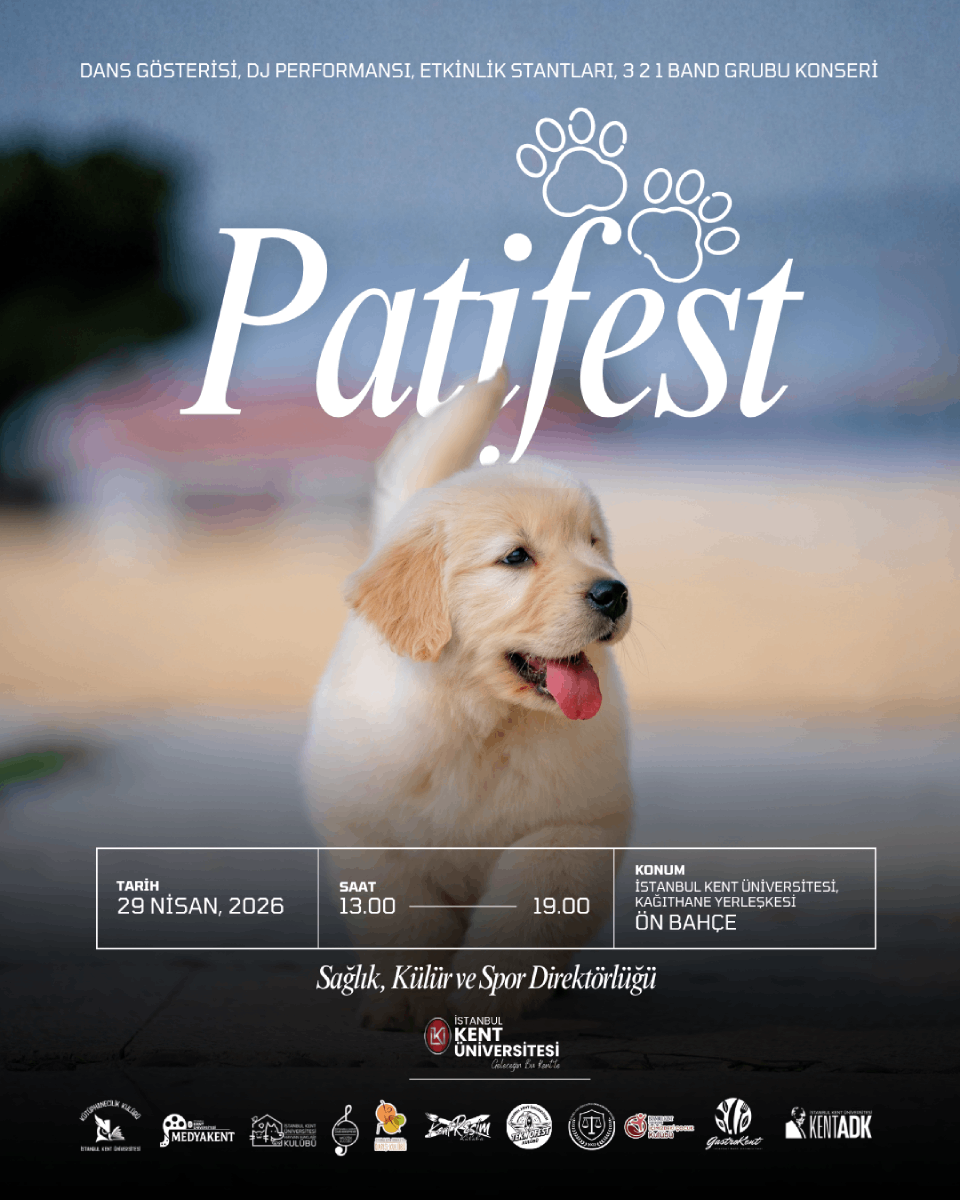 İstanbul Kent Üniversitesi Sağlık, Kültür ve Spor Direktörlüğü tarafından düzenlenen " Patifest " konulu etkinlik 29 Nisan saat: 13:00'da Kağıthane Kampüsü Ön Bahçe de gerçekleştirilecektir.