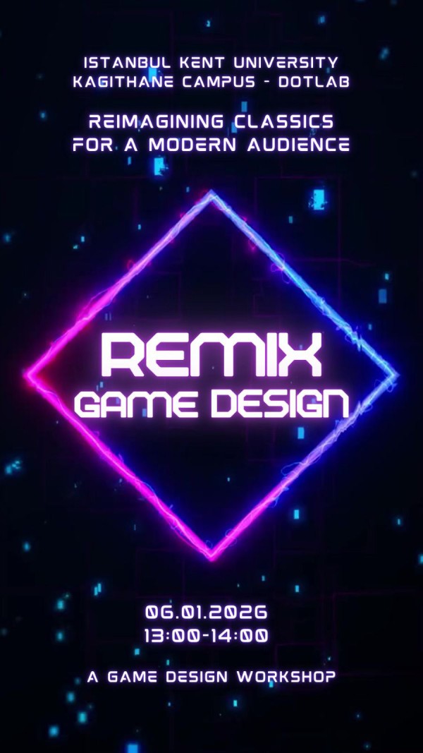 İstanbul Kent Üniversitesi Sanat ve Tasarım Fakültesi Dijital Oyun Tasarımı Bölümü tarafından düzenlenen ''Remix Game Design'' etkinliği 6 Ocak günü 13:00-14:00 saatleri arasında Kağıthane Kampüsümüzün DOTLAB'ında gerçekleştirilecektir.