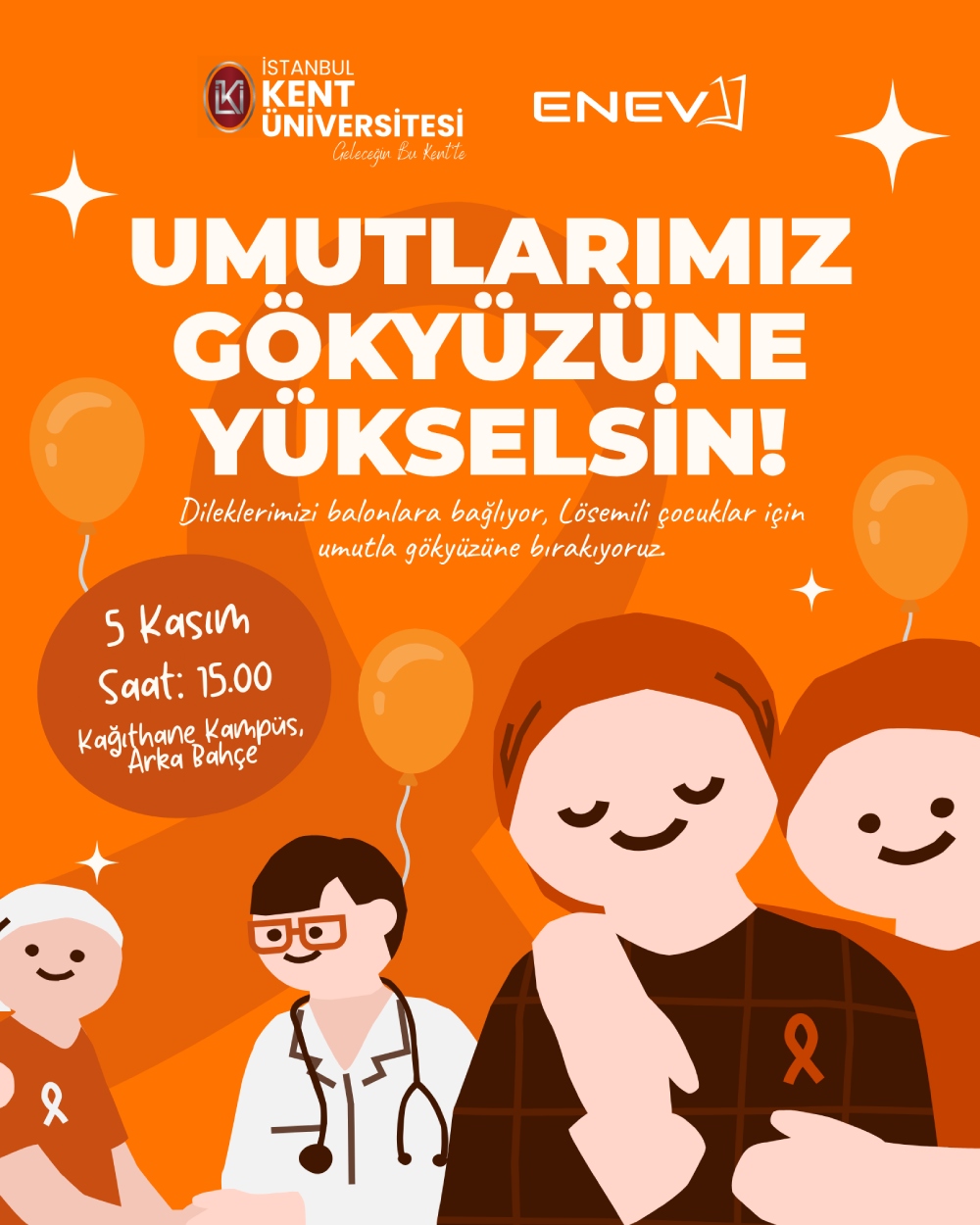 İstanbul Kent Üniversitesi Kurumsal İletişim ve Halkla İlişkiler Direktörlüğü tarafından düzenlenen " Umutlarımız Gökyüzüne Yükselsin" konulu etkinlik 5 Kasım saat: 15:00’da Kağıthane Kampüsü Arka Bahçe de gerçekleştirilecektir.