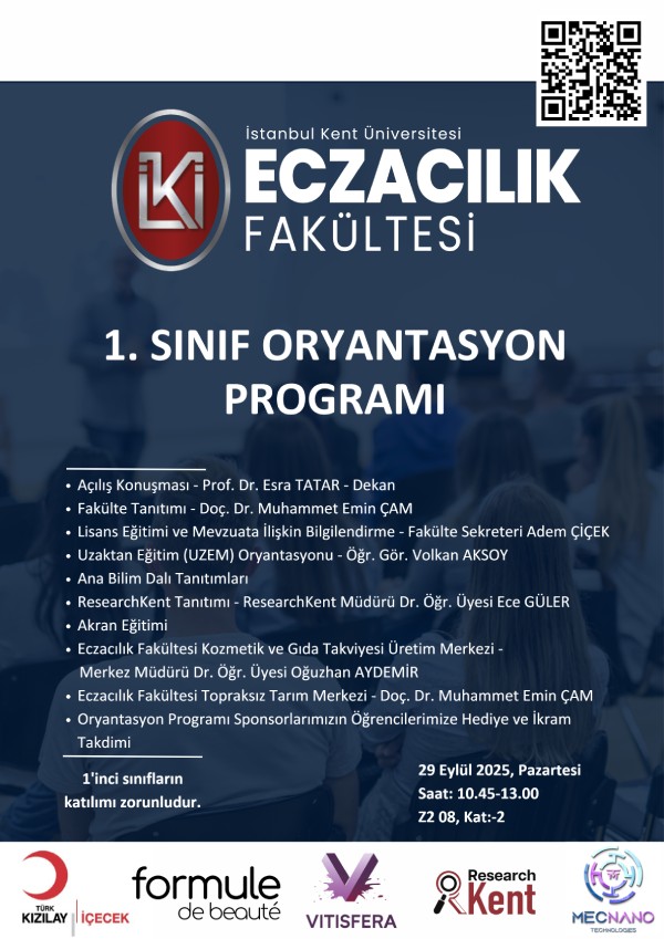 2025-2026 eğitim-öğretim yılında Fakültemize kaydolan 1. sınıf öğrencilerimiz için 29 Eylül 2025 tarihinde Kağıthane Kampüsünde oryantasyon yapılacaktır.