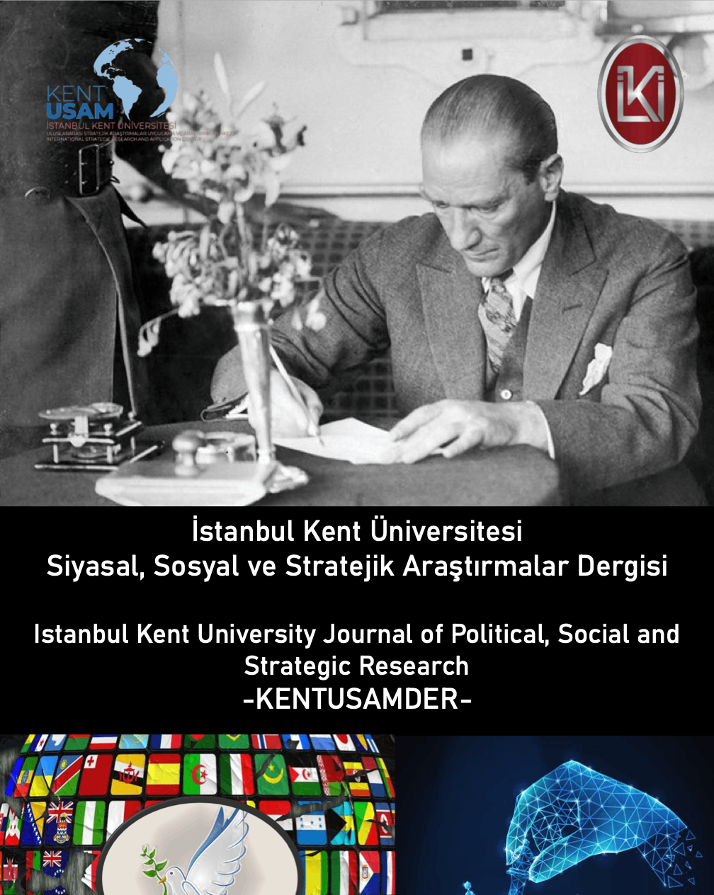 İstanbul Kent Üniversitesi Siyasal, Sosyal ve Stratejik Araştırmalar Dergisi (KENTUSAMDER), 2026 yılı Cilt 2 Sayı 1 ile akademik yayın hayatına katkı sunmaya devam ediyor. Disiplinler arası bir yaklaşımla hazırlanan dergi, siyaset bilimi, uluslararası ilişkiler, diplomasi, ekonomi ve stratejik araştırmalar alanlarında özgün akademik çalışmaları bir araya getiriyor.
