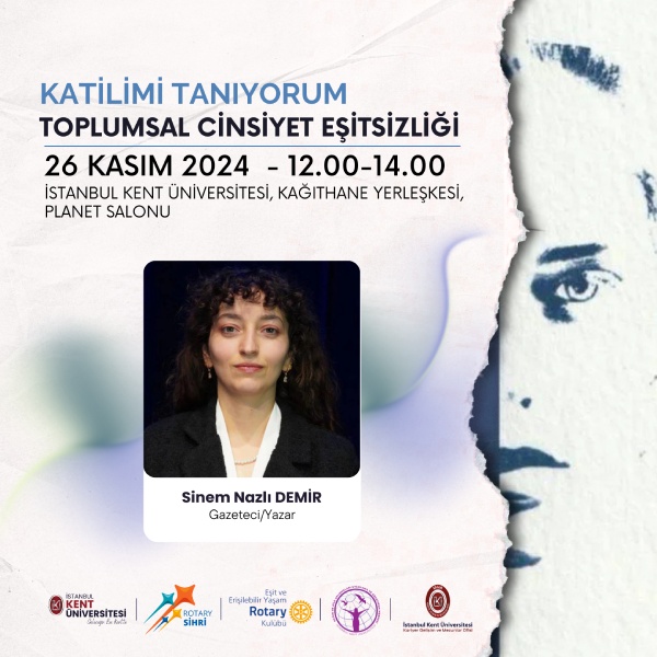 İstanbul Kent Üniversitesi Kariyer Gelişim ve Mezunlar Ofisi (KAGEM) ile Kadın ve Aile Çalışmaları Uygulama ve Araştırma Merkezi (KAMER) tarafından düzenlenen Katilimi Tanıyorum / Toplumsal Cinsiyet Eşitsizliği isimli etkinlik 26 Kasım 2024 günü 12.00-14.00 saatleri arasında Kağıthane Yerleşkemizin Planet Salonunda gerçekleşmiştir.