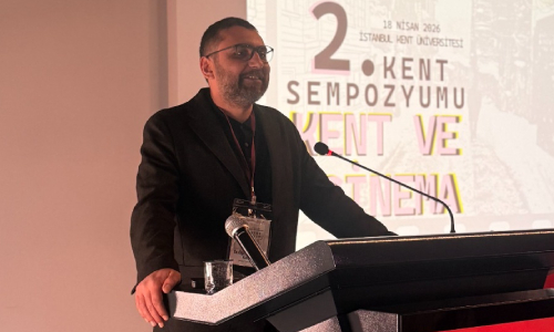 İstanbul Kent Üniversitesi Kent Araştırmaları Uygulama ve Araştırma Merkezi (Kent-AR), Yabancı Diller Yüksekokulu ve Sanat ve Tasarım Fakültesi Radyo, Televizyon ve Sinema Bölümü iş birliğiyle düzenlenen “Kent Sempozyumları II: Kent ve Sinema”, 18 Nisan 2026 tarihinde Taksim Kampüsü’nde gerçekleştirildi.