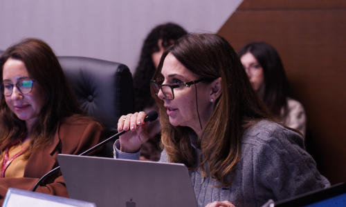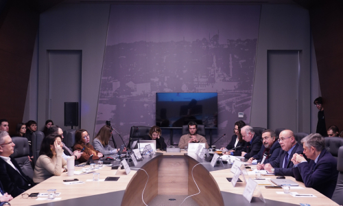Amerika Birleşik Devletleri ve İsrail’in İran’a Yönelik Müşterek Operasyonu Bağlamında Kriz Yönetimi ve Çatışma Çözüm Arayışları konusunda Araştırma Görevlisi Elif ÜÇERLİ; çatışmanın tarihsel altyapısına değinirken olası çözüm arayışlarını tartıştı. Buna göre önleyici vuruş doktrininin kökenleri, iki dünya savaşında kullanımı ve Irak işgali ile yeniden gündeme gelmesinden bahsetti. ABD’nin hegemonya mücadelesinde İsrail ile iş birliğine karşı, İran’ın savunma stratejisinin yarattığı güvenlik ikilemini tartışırken, kriz yönetimi için iletişim kanalları, sınırlılık ve büyük güçlerin pozisyonunun önemine ve uluslararası örgütlerin işlevsizliğine değindi.