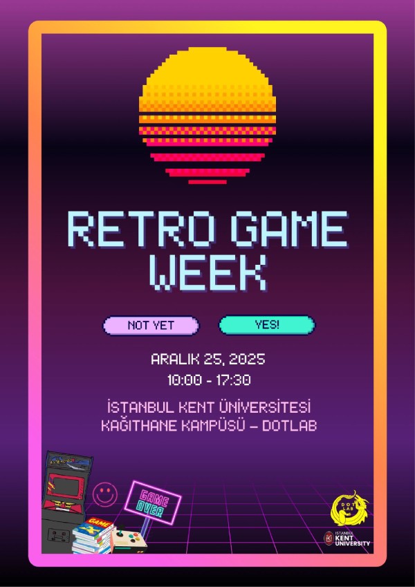 İstanbul Kent Üniversitesi Sanat ve Tasarım Fakültesi Dijital Oyun Tasarımı Bölümü tarafından düzenlenen ''Retro Game Week'' etkinliği 25 Aralık günü 10:00-17:30 saatleri arasında Kağıthane Kampüsümüzün DOTLAB'ında gerçekleştirilecektir.