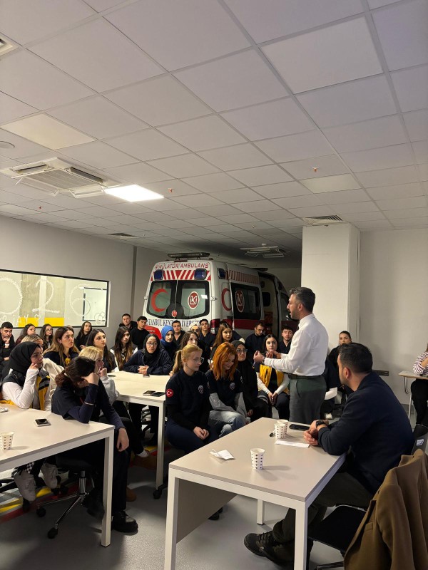 Bu etkinlik, öğrencilerimizin sahada güvenli çalışma bilinci kazanmalarına ve mesleki kariyerlerine yönelik bilinçli adımlar atmalarına katkı sağlamıştır. Sayın Paramedik Derneği Genel Başkanı Paramedik Cihan Azad EKİCİ’ye katkılarından dolayı teşekkür ederiz.