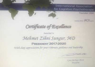 Aynı zamanda 2017 – 2020 yıllarında da Uluslararası Bilişsel Terapiler Birliği başkanlığını yapan Prof. Sungur’a “Mükemmel Liderlik ve Vizyon Sertifikası” verilmiştir.